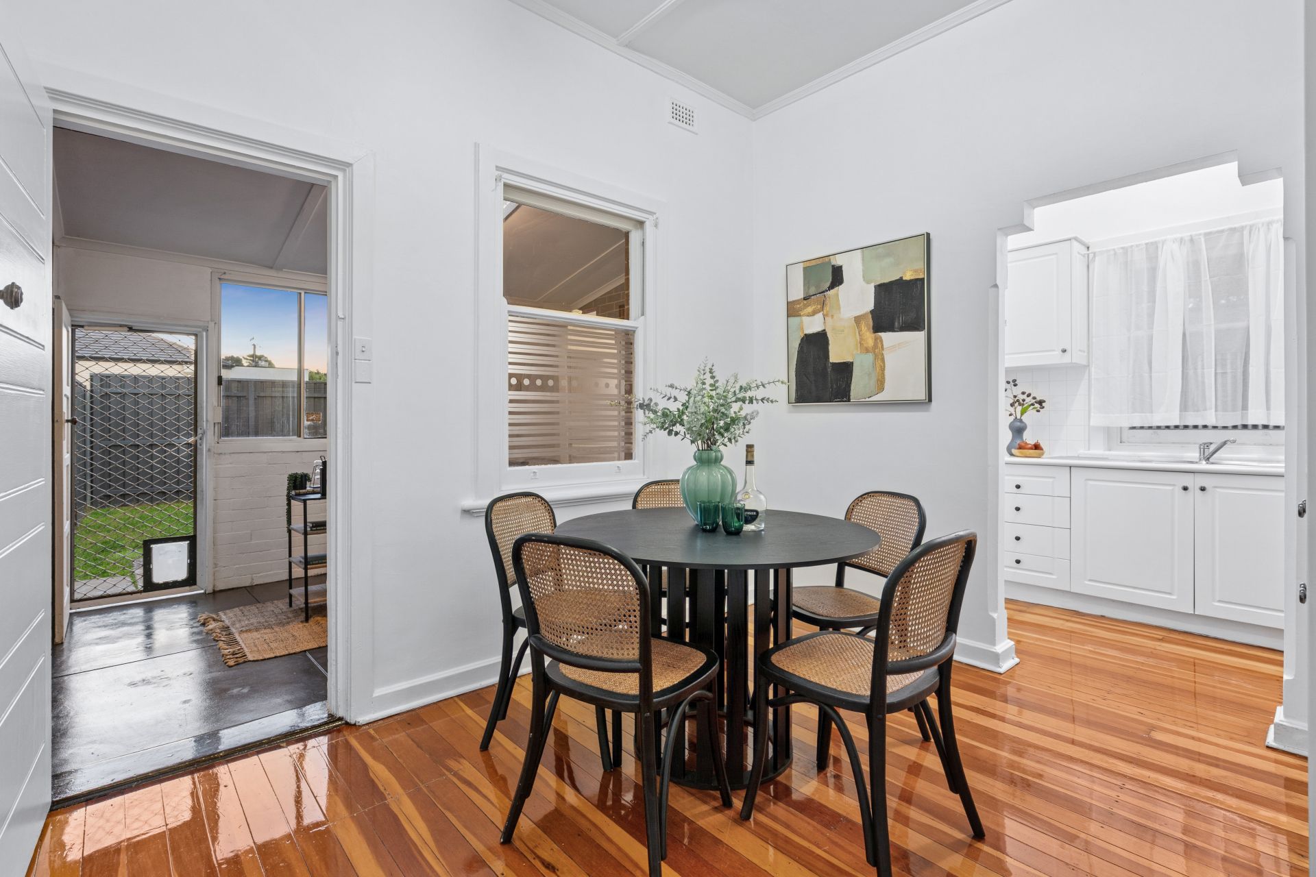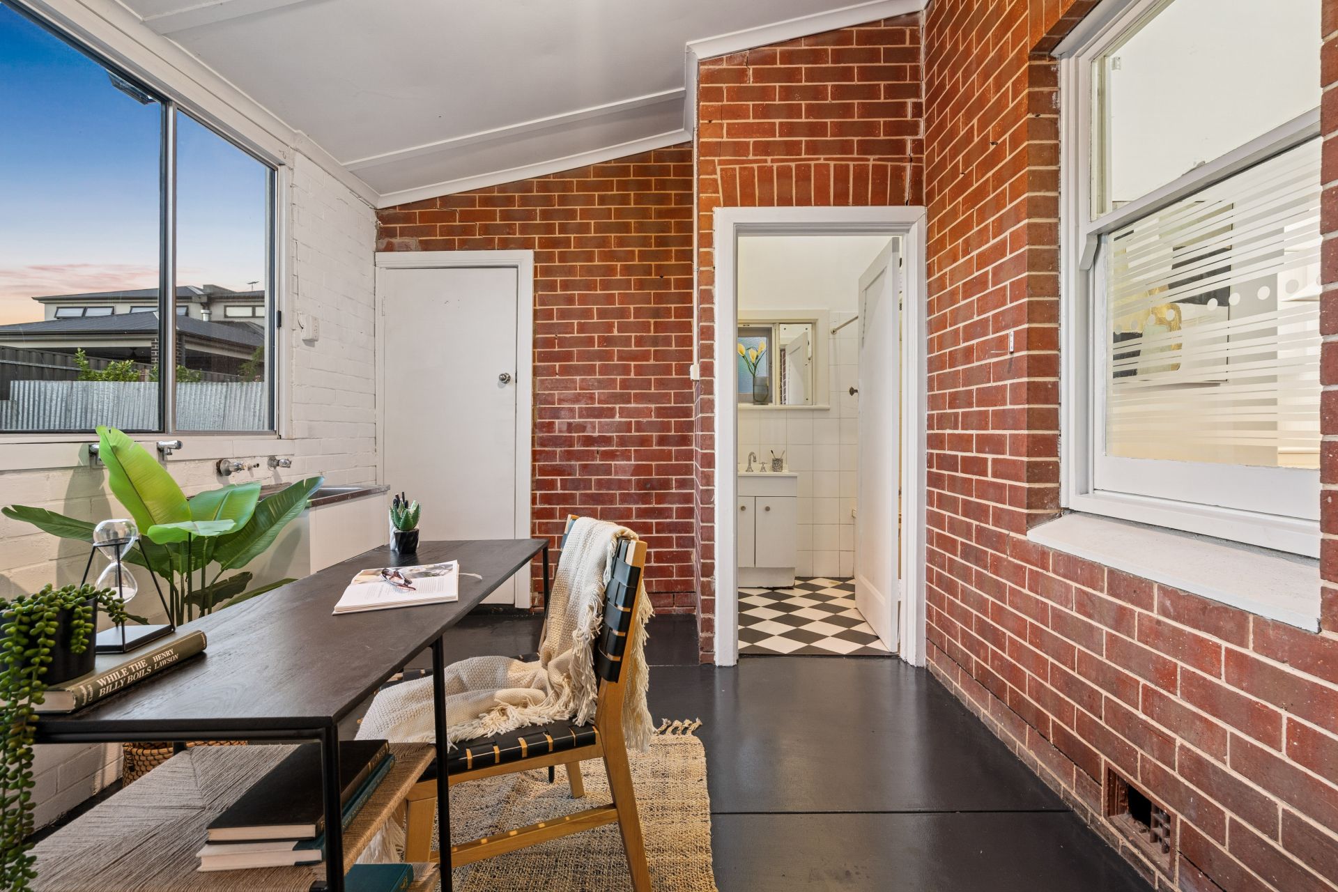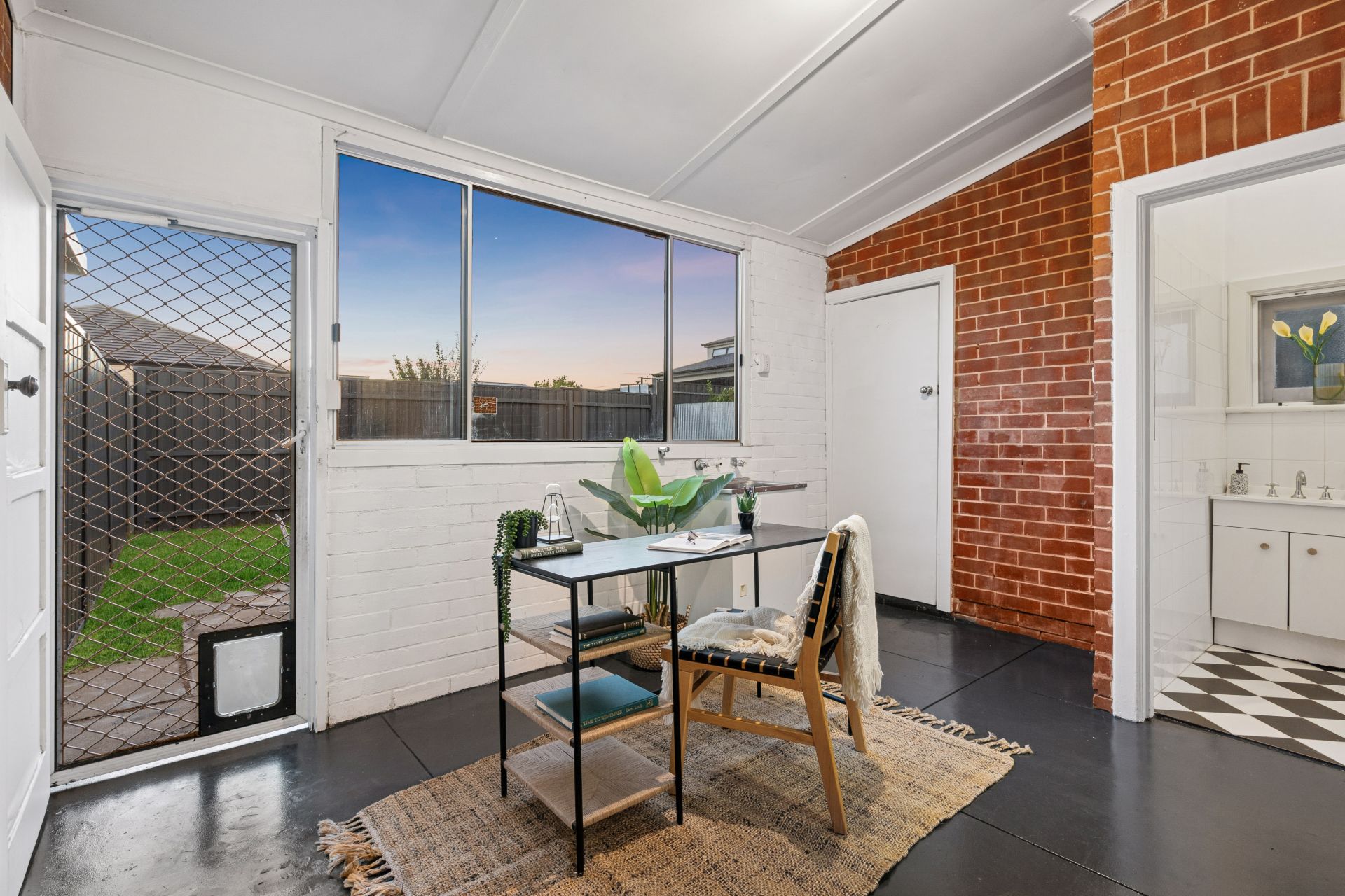 The home comprises two well-sized bedrooms, both generous in scale and filled with natural light. The centrally located bathroom is well presented and services the home with ease, while a sunroom and laundry area at the rear provides additional flexibility, ideal for those working from home, a second living zone, or future updates.