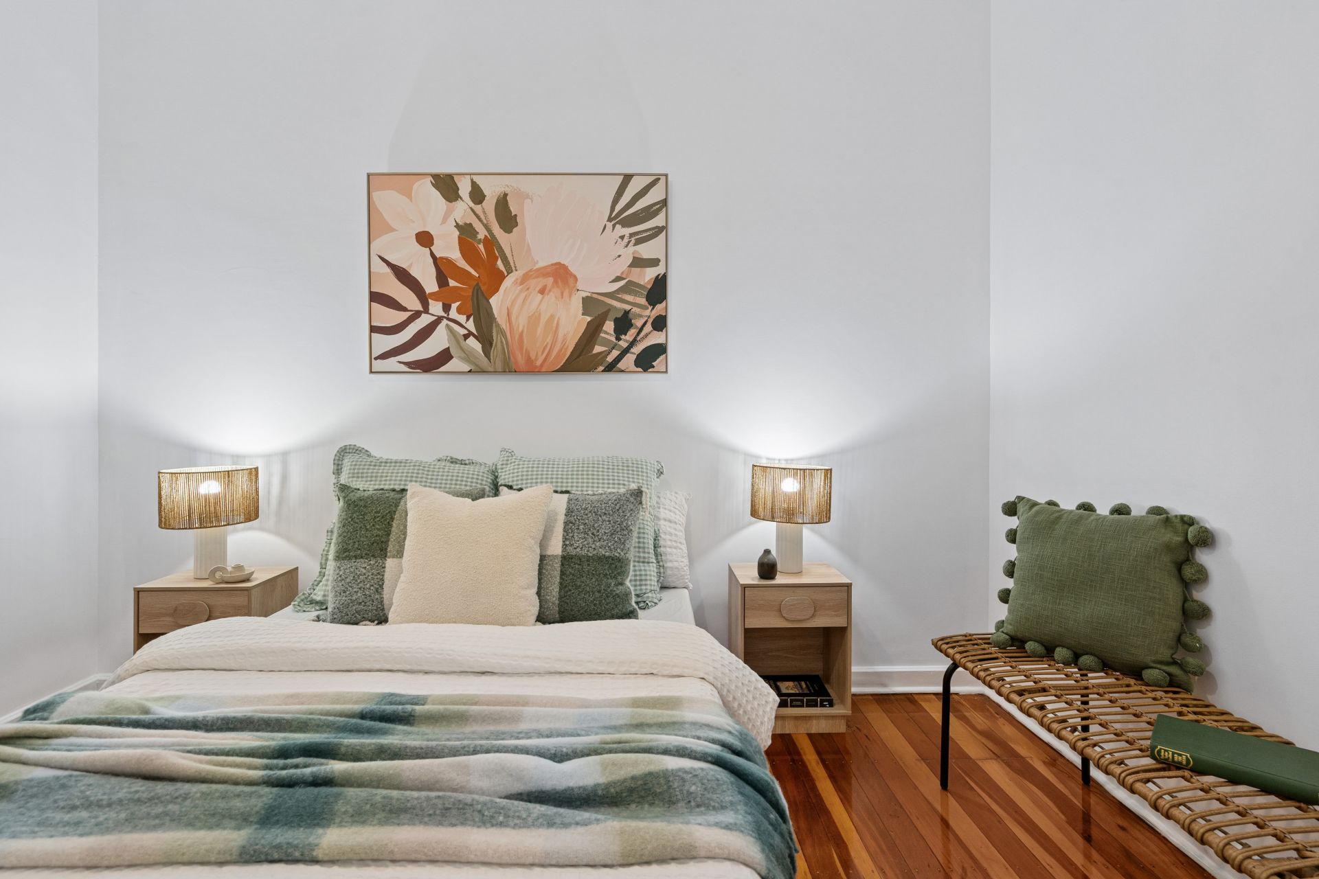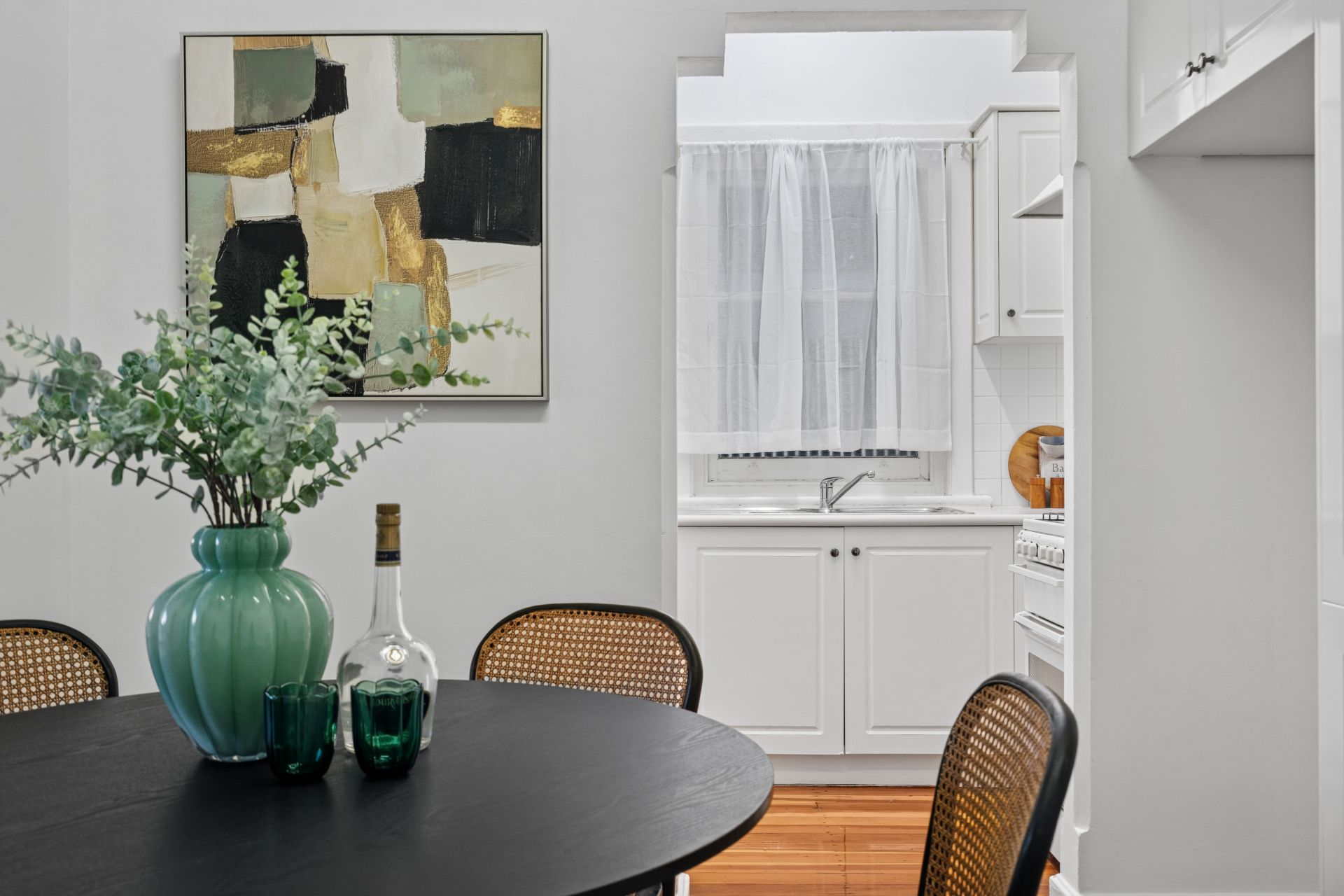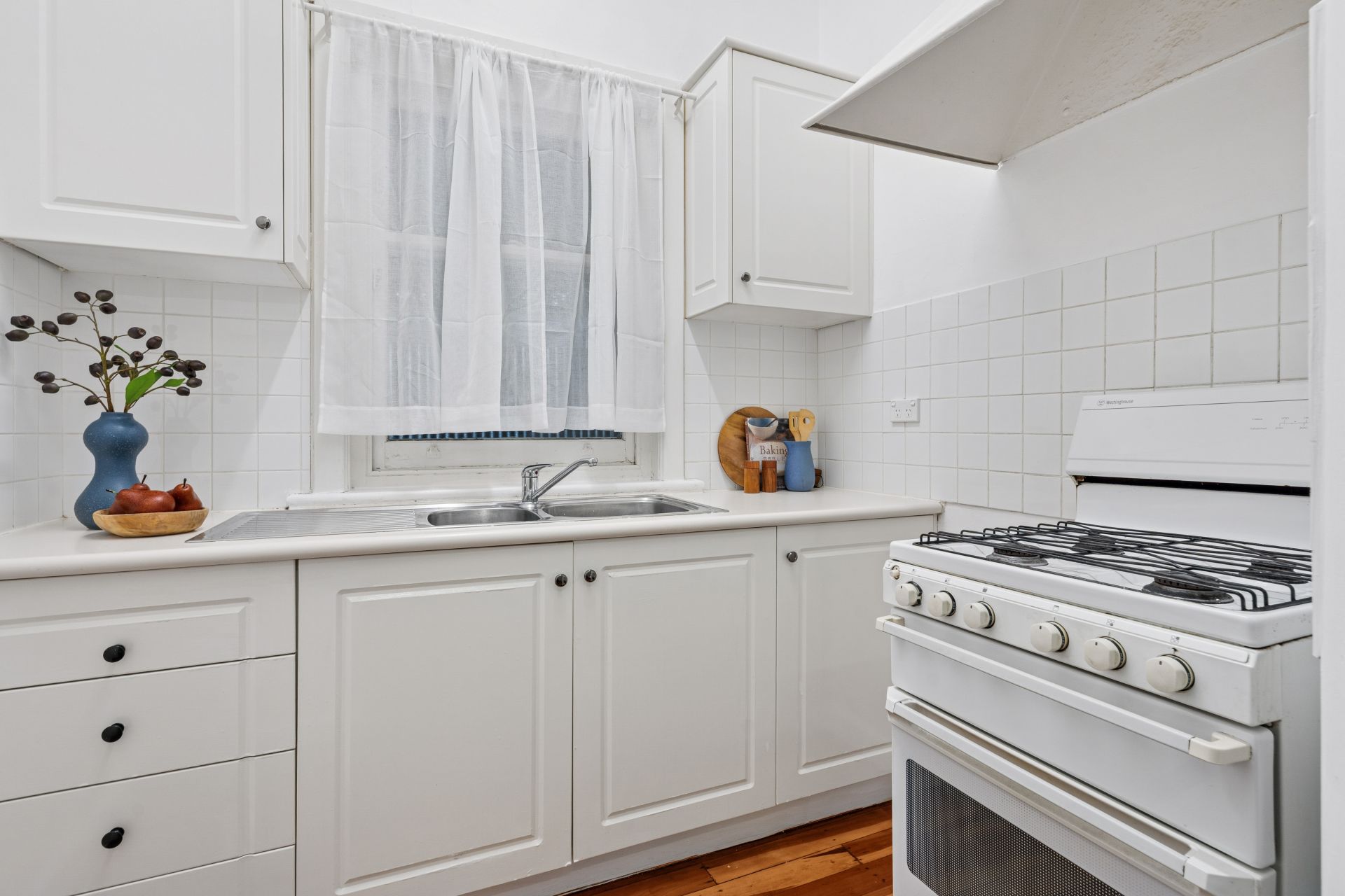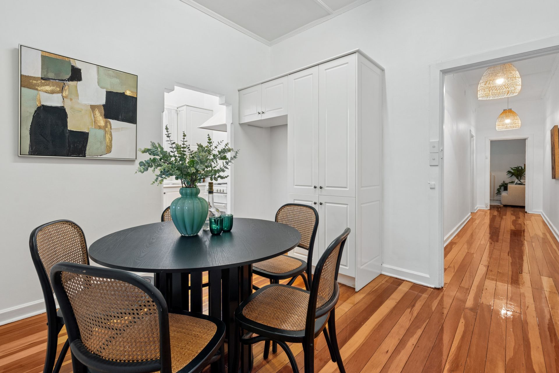 – Polished timber floorboards